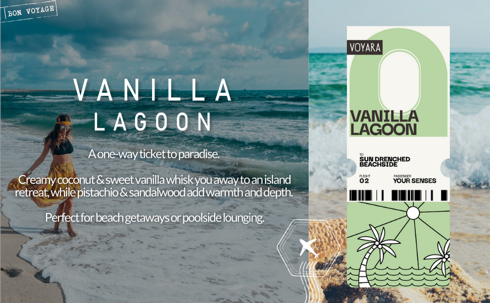 Creamy, warm, and irresistibly inviting — VOYARA Vanilla Lagoon captures the feeling of sun-kissed skin and endless summer days. Smell like a beachside escape.